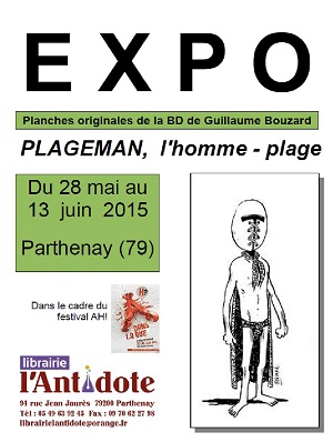 Exposition de dessins originaux de BD de Guillaume Bouzard, tirés de la série Plageman, dans le cadre du festival AH! à Parthenay. Visible du 27 mai au 13 juin dans la librairie. Entrée libre.